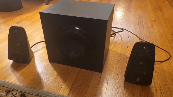 Top quality Logitech Z623 2.1 Speaker System for Sale in South Minneapolis (near Lake Harriet) Cost of new speaker $199. Selling for $29. Gently used for a few years. In very good condition. Two speakers and one subwoofer deliver clear sound with nice bass response. 200 watts RMS power.